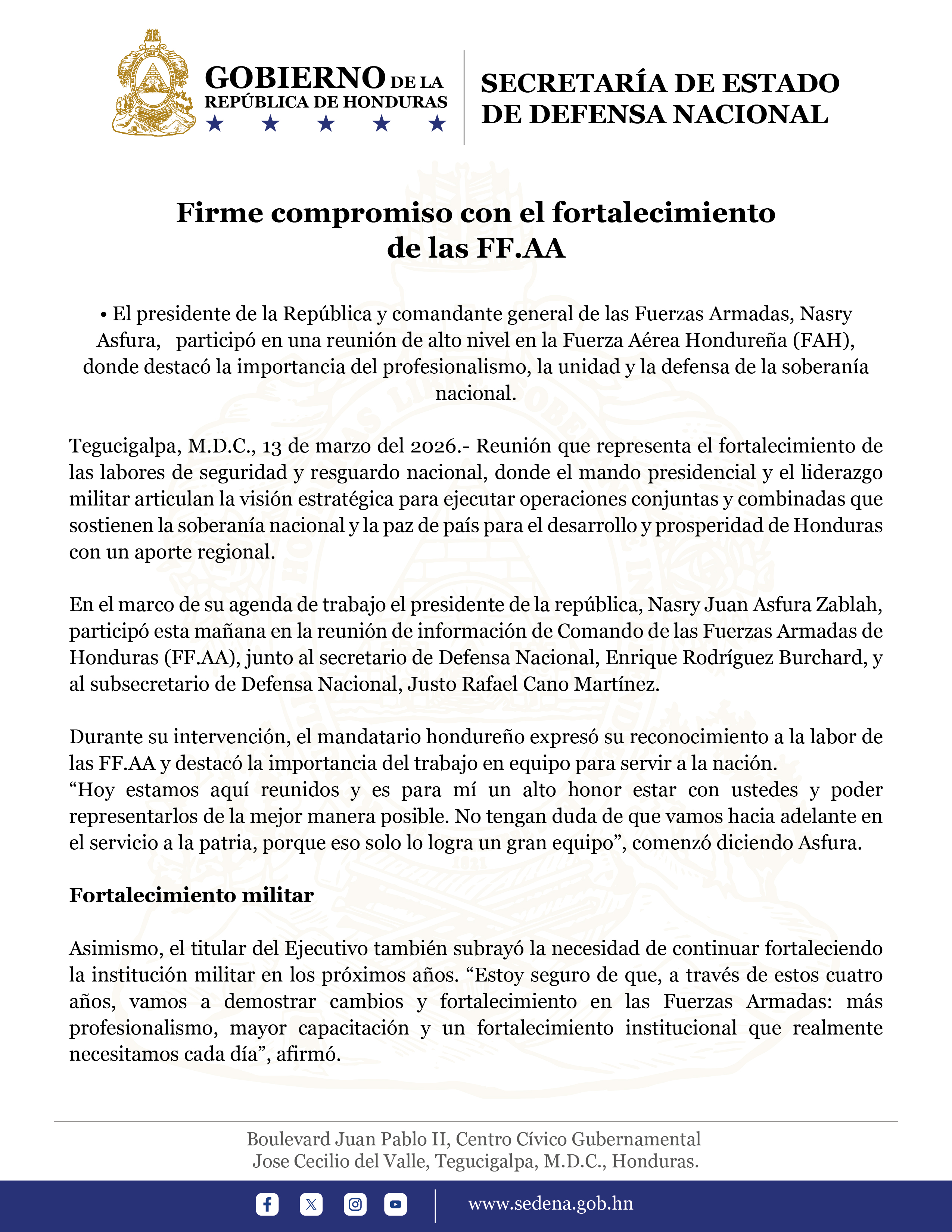 © 2026. Derechos Reservados Secretaría de Defensa Nacional de Honduras