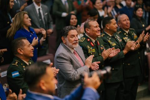 En la ceremonia, el presidente de la Comisión Interventora, General José Miguel Mejía, entregó un reconocimiento especial al Viceministro de Defensa Nacional, Orlando Garner Ordóñez, por su valioso apoyo en la gestión de los centros penitenciarios.