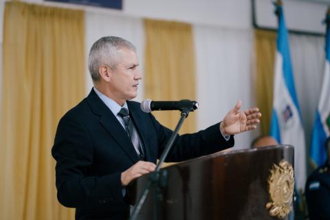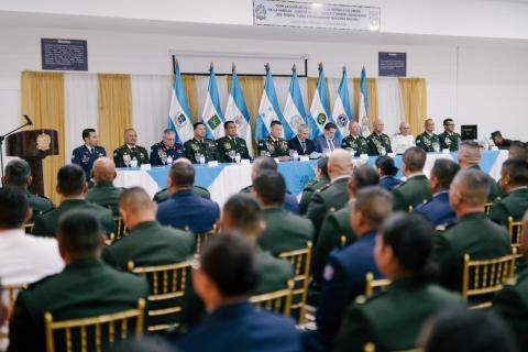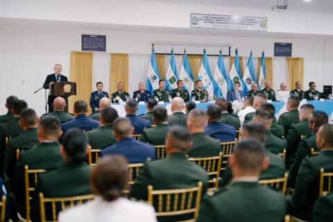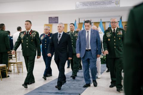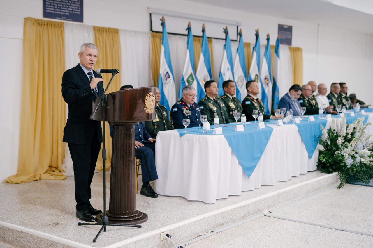 El Ministro de Defensas Nacional, general (r), Roosevelt Hernández, acompañado por el Viceministro de Defensa Nacional, Orlando Garner Ordóñez, el jefe del Estado Mayor Conjunto, general Héctor Valerio Ardón, y la Junta de Comandantes de las FF.AA., lideran está mañana la ceremonia de inauguración del Curso de Altos Estudios Militares (CAEM N.º 23) y del Curso de Comando y Estado Mayor (CCEM N.º 38), eventos que marcan un hito en la profesionalización de los oficiales de las FF.AA. En esta significativa ceremonia, nueve tenientes coroneles (o su equivalente) inician el proceso de formación de un año, requisito indispensable establecido por la Ley Constitutiva de las Fuerzas Armadas, para ascender al grado de coronel.