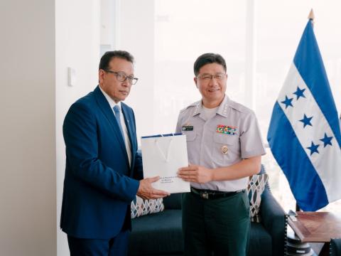 El subsecretario de Defensa Nacional, Justo Rafael Cano Martínez, sostuvo una audiencia de presentación con el coronel Younguk Kim, Agregado Militar, Naval y Aéreo de la Embajada de la República de Corea del Sur en México, concurrente para Honduras.